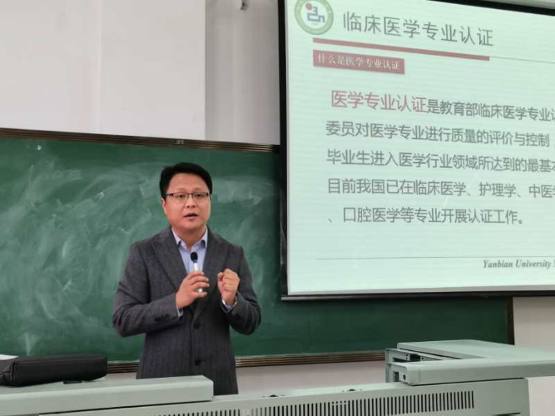为做好医学院临床医学专业认证工作,医学院召开临床医学专业认证学生培训会。全院各专业学生共同参加。医学院金铁峰老师、兰艳老师、张默涵老师等为全体医学院学生详细介绍了临床医学专业认证的目的、内容以及重要意义。并鼓励学生要发扬爱校荣校的集体荣誉感,支持临床医学专业认证工作,勉励学生要提高专业自信和专业认同感,认真学好专业认证知识手册。
