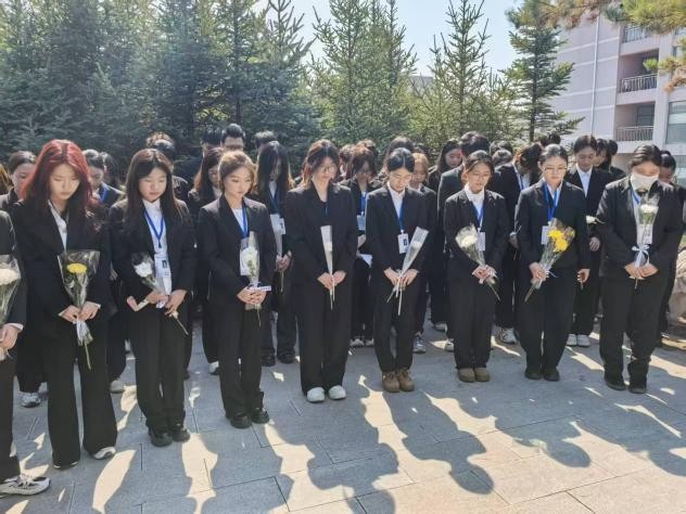 活动现场庄严肃穆,全体人员整齐列队、佩戴白花,向卢基舜教授集体默哀,表达深切缅怀与敬意。学生代表现场分享卢基舜教授的生平事迹,回顾其投身延边医学教育事业、深耕育人一线的经历,引导在场医学生感悟医者使命与担当。